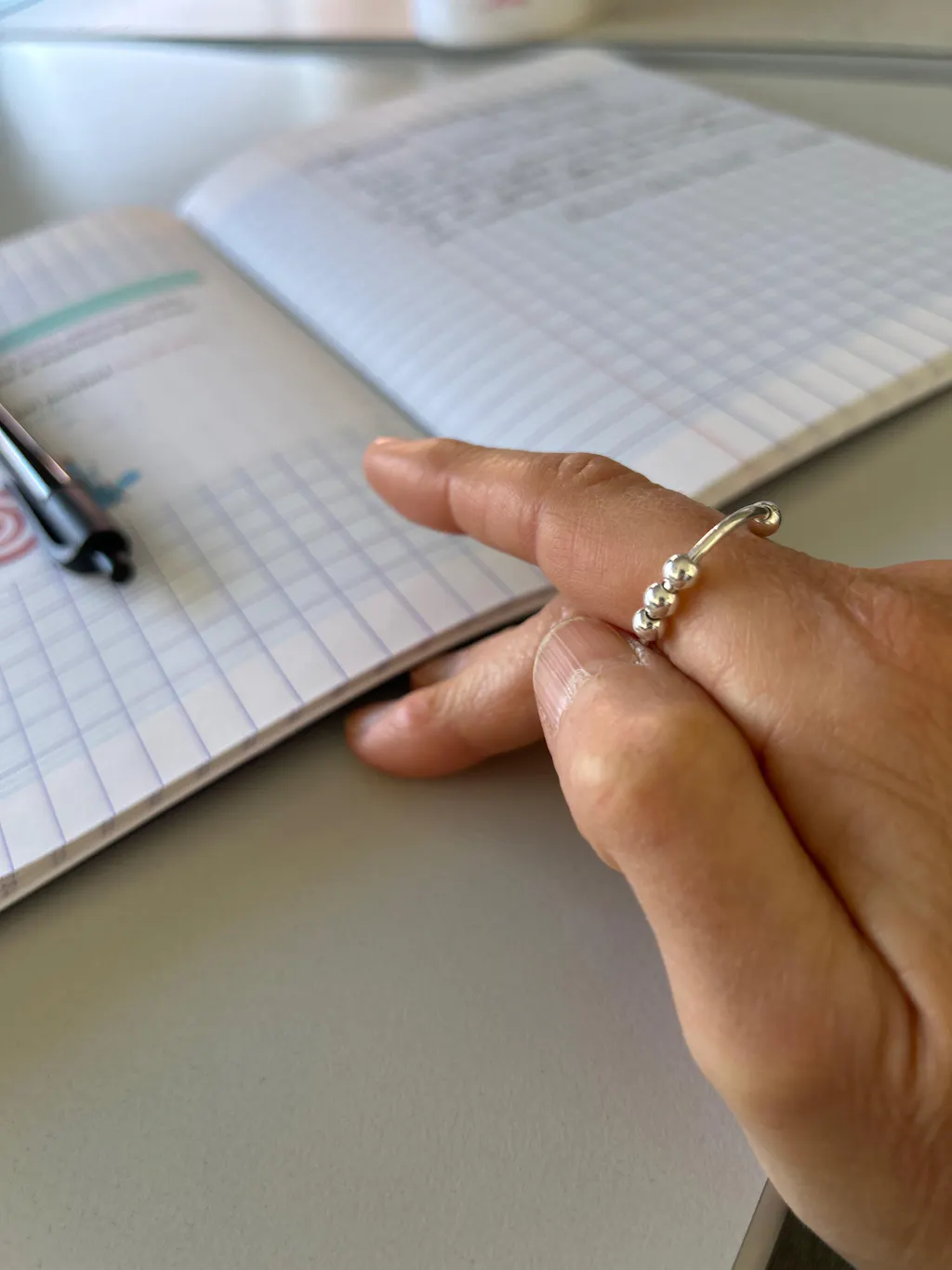 La Bague Chill utilise l’ancrage sensoriel pour calmer votre anxiété en douceur. À chaque montée de stress ou envie de gestes compulsifs (ronger les ongles, gratter la peau…), faites simplement tourner ses perles mobiles entre vos doigts.